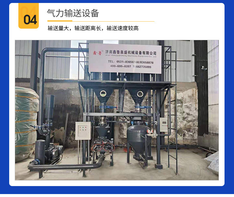 a 稀相正压气力输送系统(也称正压气流输送系统或气运输送系统)是以乐鱼在线登录入口(如罗茨风机)输出的气流为载体将散装粉粒物体物料卸入管道进行压送,稀相正压气力输送系统的正压值小于0.15Mpa,气固比为5~20,正压气力送系统能力可达到60吨/小时(单条风运线)且输送距离能达到400米。