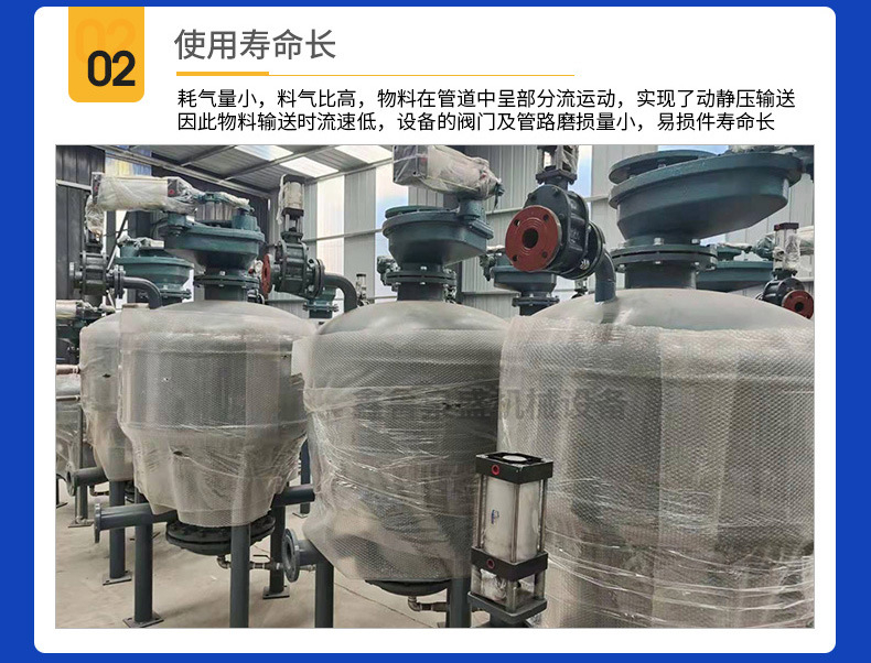 仓泵又称仓式泵,是在高压下(约700kPa以下)输送粉状物料的一种比较可靠的密相动压气力输送装置。